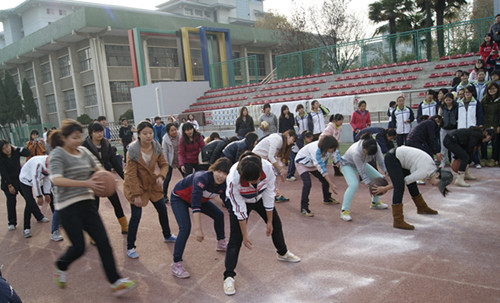 冬季趣味运动会火热开赛!同学们都积极参与,天气也相当的给力。温暖的阳光让全场气氛迅速升温。下午两点左右,“海底捞月”的队员们积极投入赛前练习,三点“海底捞月”正式开始!